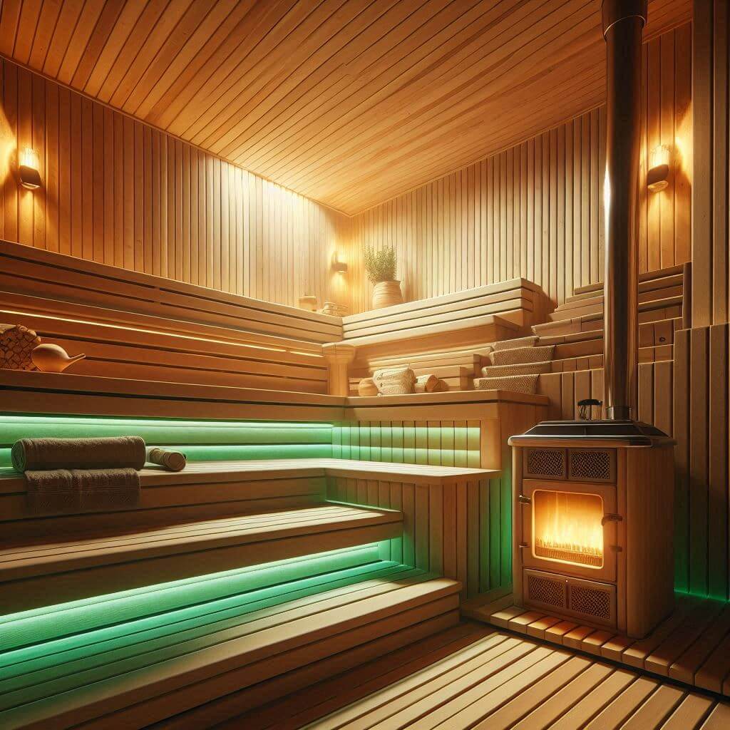 サウナ室はケロ材を使用しており、独特の香りと温かみのある雰囲気が特徴です。